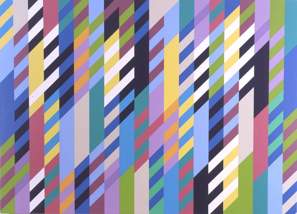 Archive Bridget Riley Previous work Bridget RileyThrough 1988 Oil on canvas 165 x 227 cms Ref: 458072 SOLD Enquire about this item Signed by the artist on the reverse and along the side overlap.