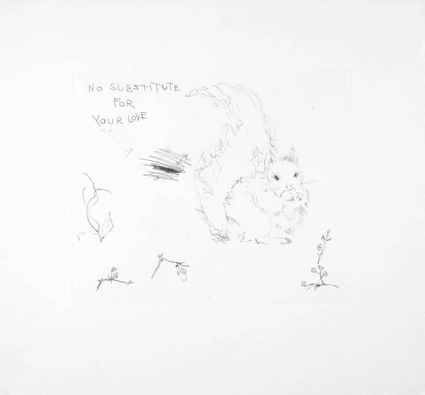 Archive Tracey Emin Previous work Next work Tracey EminNo Substitute For Your Love 2003 Soft ground etching 18 x 20 ins (45.72 x 50.80 cms) Ref: 666792 SOLD Enquire about this item