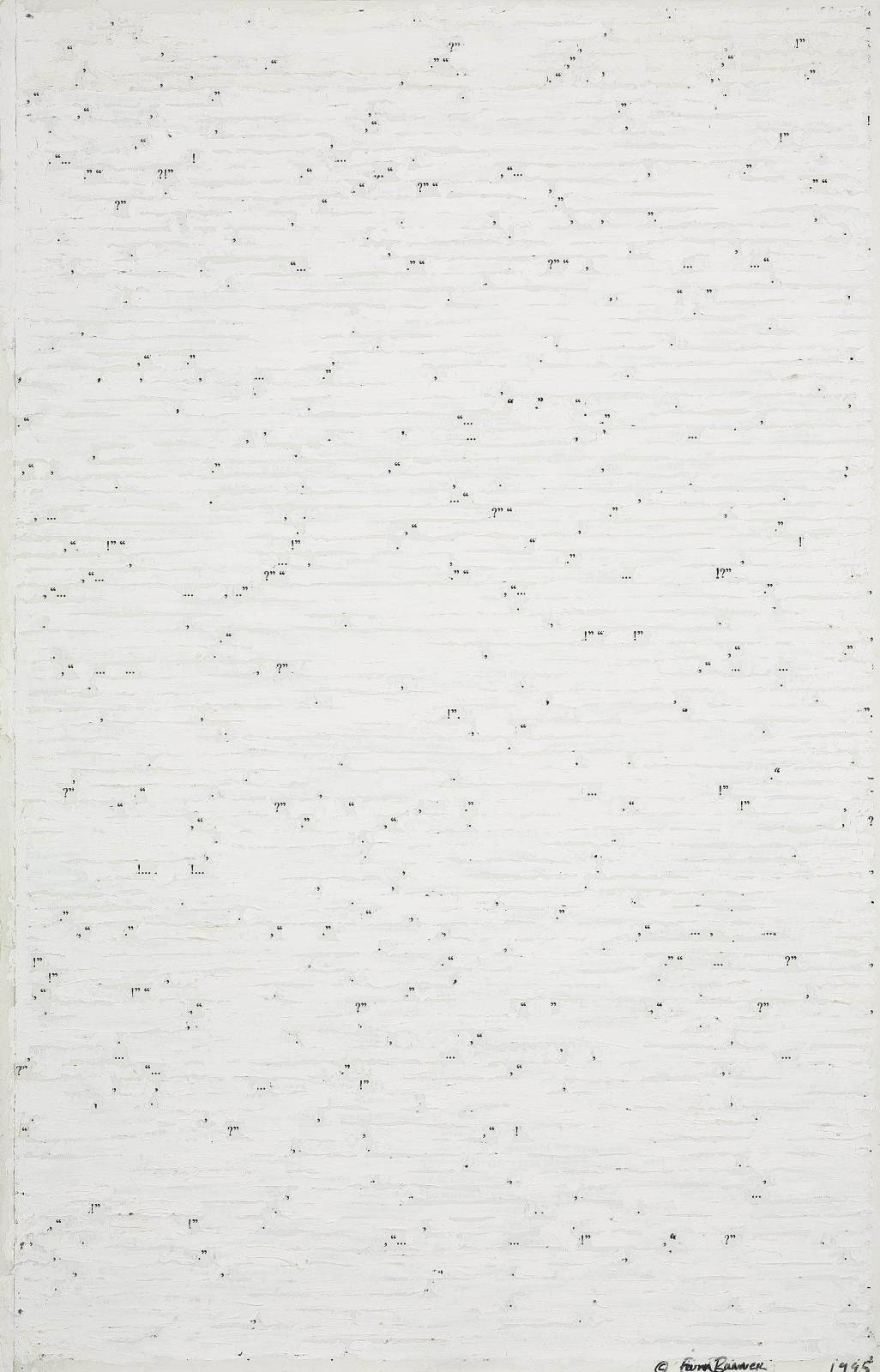 Banner has since created large scale sculptures of punctuation marks in painted bronze which she considered individual pieces of sculpture. As regards her text work she describes it as: 'There's always this attempt to keep up with words, I find, and it's impossible. You can't describe things as they're happening, not without losing a lot. From that point on I started thinking about punctuation in a spatial, more concrete way. The idea of punctuation as 'form' that might actually represent itself.' (from Making it Real, a conversation with Matthew Higgs, 1997).